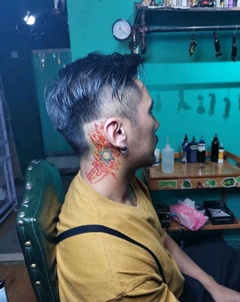 旧图修改 ⚙赛博朋克机械纹身图片_颈部欧美写实机械修改遮盖纹身图案