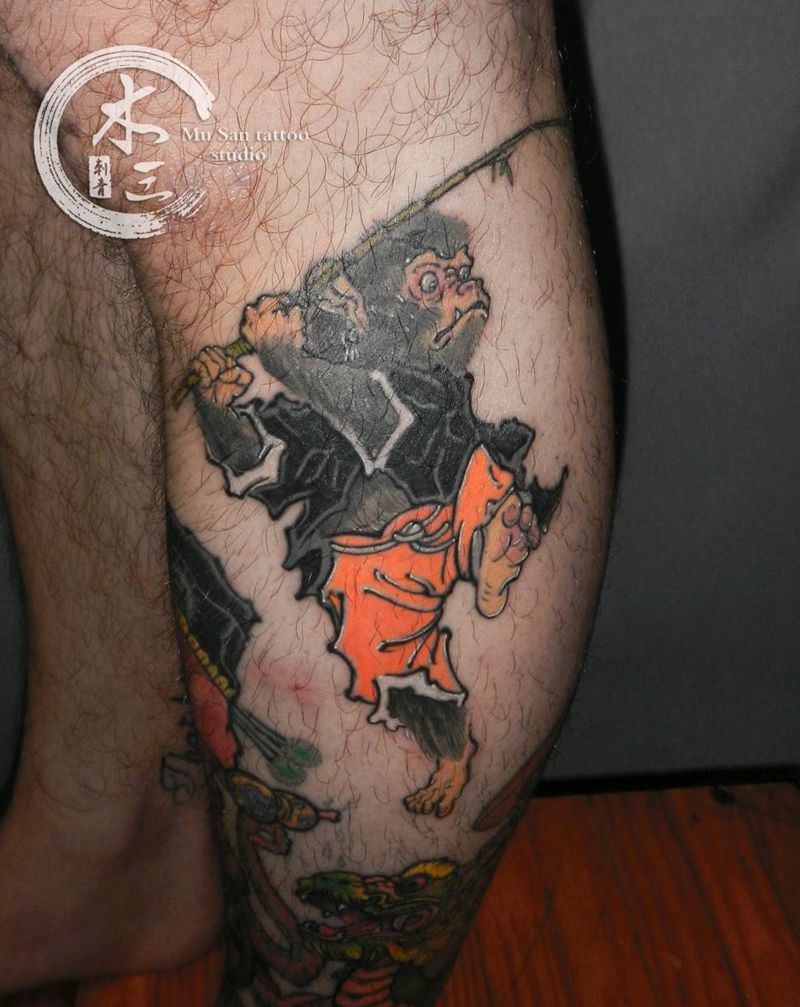 当前位置: 首页 >湖南省长沙市纹身店-木三刺青纹身工作室纹身图案>动物园花腿 添加醉猴子