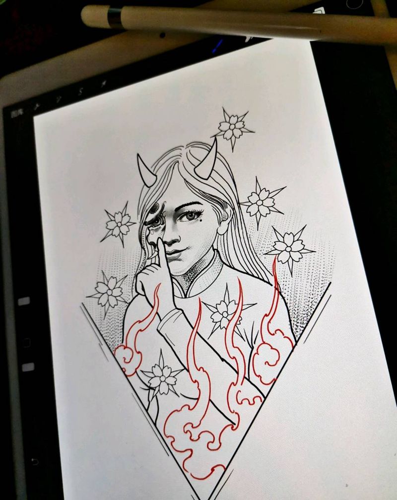 速涂 般若美女 手稿纹身图片_新传统New School纹身图案