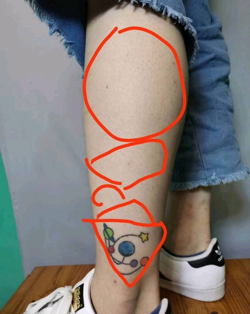 • T网红王老大花腿龙纹身图片_腿部新传统纹身图案