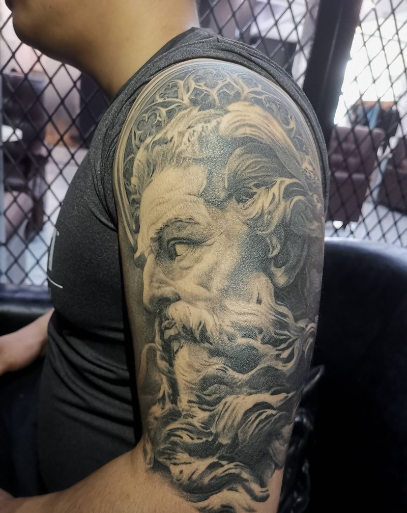 波塞冬(刚做好和恢复后)纹身图片_手臂欧美写实纹身图案