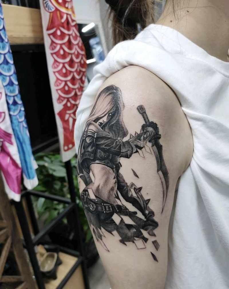 • 纹身吧推荐的披肩图腾半胛纹身图案作品展示