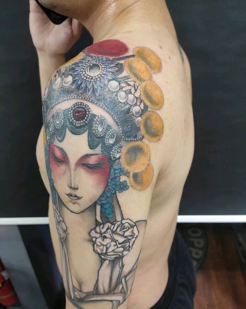 当前位置: 首页 >湖南省长沙市纹身店-长沙行刺刺青纹身图案>花旦纹身图片_手臂纹身图案