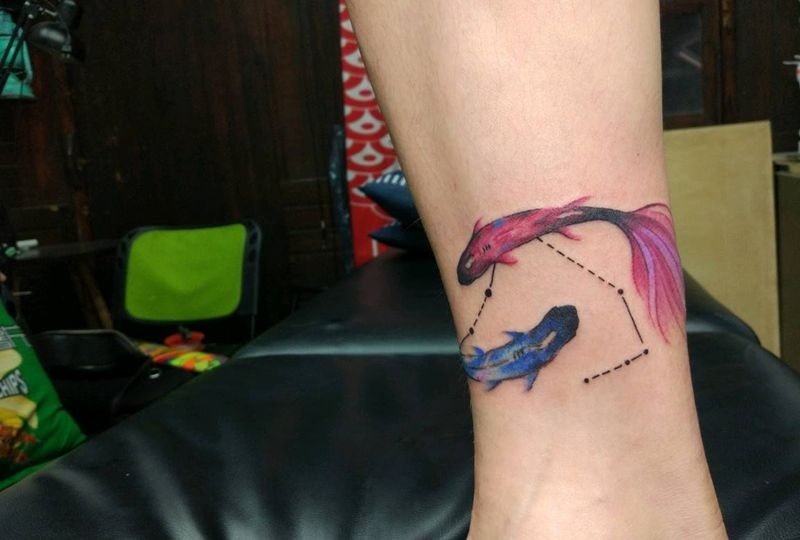 当前位置: 首页 >湖南省长沙市纹身店-长沙行刺刺青纹身图案>双鱼座纹身图片_水彩纹身图案