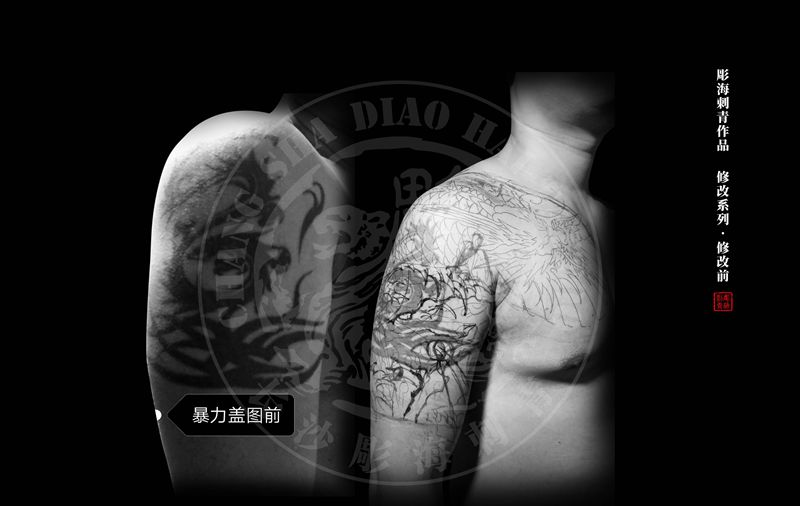 当前位置: 首页 >湖南省长沙市纹身店-长沙彫海刺青工作室纹身图案>修改.遮盖纹身图片_手臂肩部老传统纹身图案