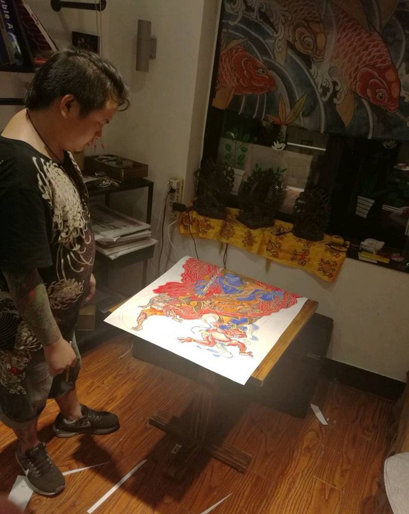 当前位置: 首页 >湖南省长沙市纹身店-长沙彫海刺青工作室纹身图案>传统不动明王手稿纹身图片