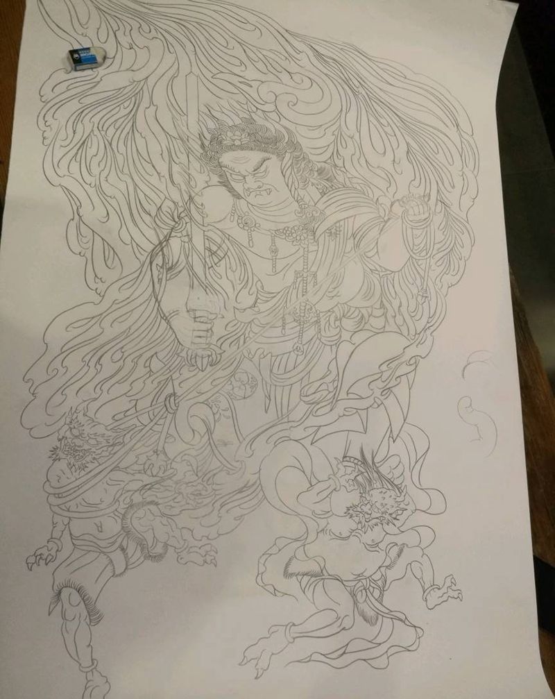 当前位置: 首页 >湖南省长沙市纹身店-长沙彫海刺青工作室纹身图案>传统不动明王手稿纹身图片