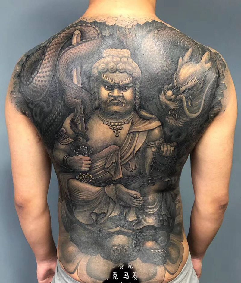 不动明王(大黑天)纹身图片_背部老传统新传统大黑天纹身图案