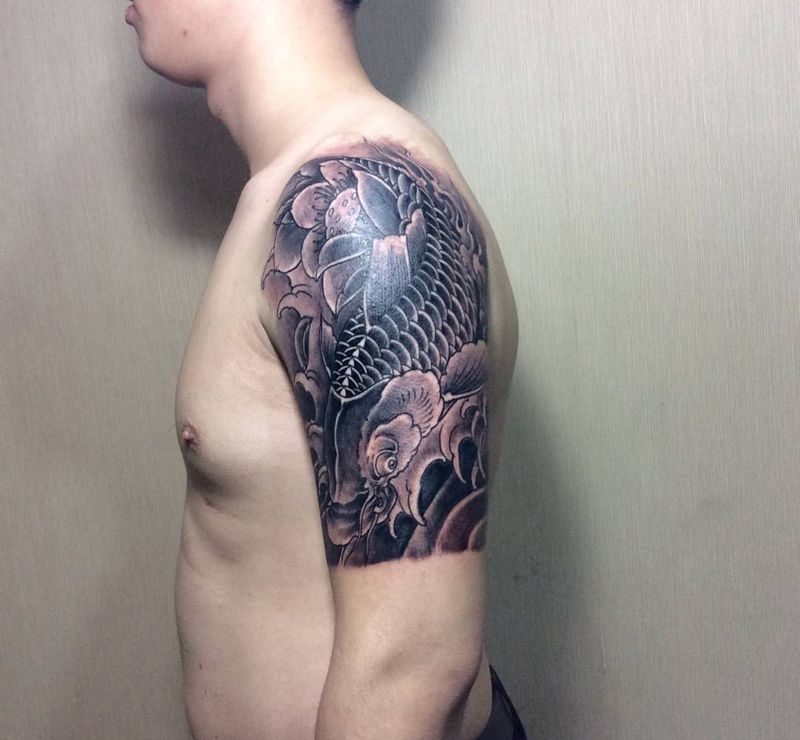 特价鲤鱼纹身图片_手臂传统纹身图案