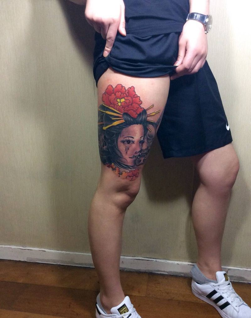 • T网红王老大花腿龙纹身图片_腿部新传统纹身图案