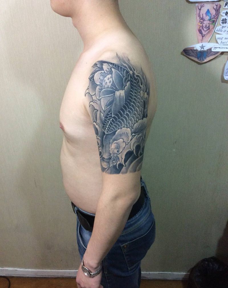 大臂鲤鱼恢复后纹身图片_长沙湖南鲤鱼纹身图案