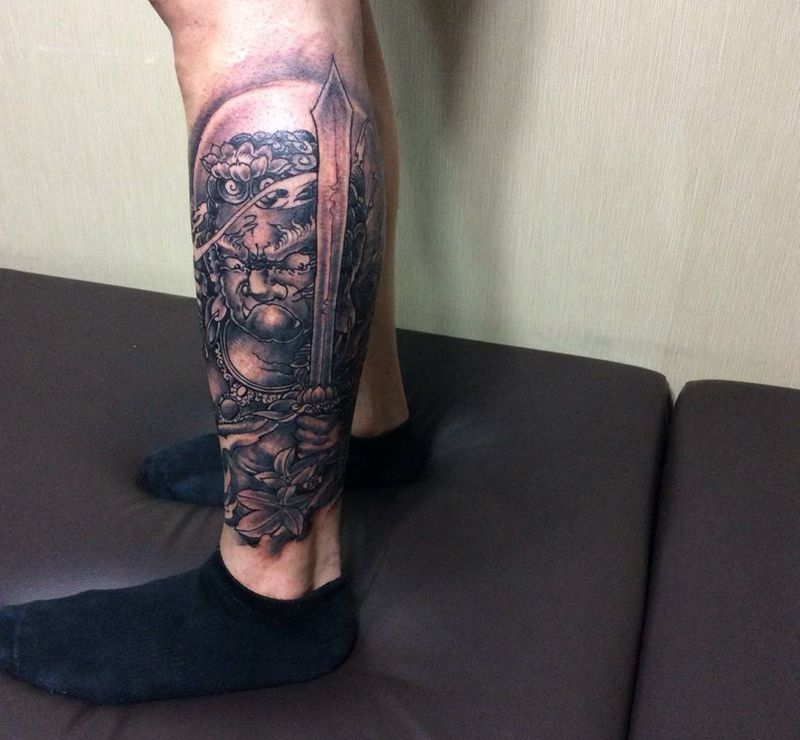 • T网红王老大花腿龙纹身图片_腿部新传统纹身图案