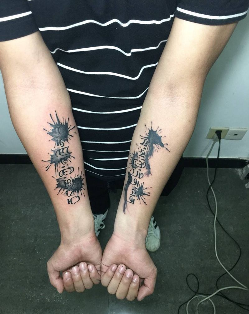 当前位置: 首页 >湖南省长沙市纹身店-长沙玩舍纹身刺青工作室纹身图案>泼墨藏文纹身图片