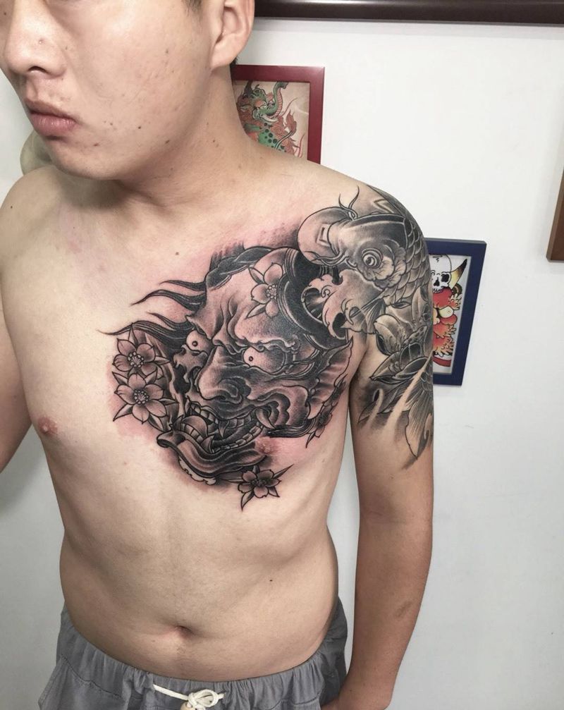 果然纹名字的都会分……纹身图片_手臂胸部传统动物鬼神半甲纹身图案