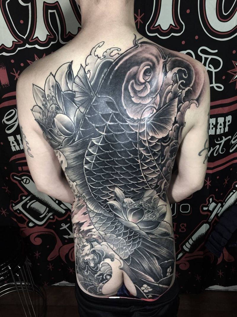 • T云龙九郎纹身图片_背部老传统云龙九郎纹身图案