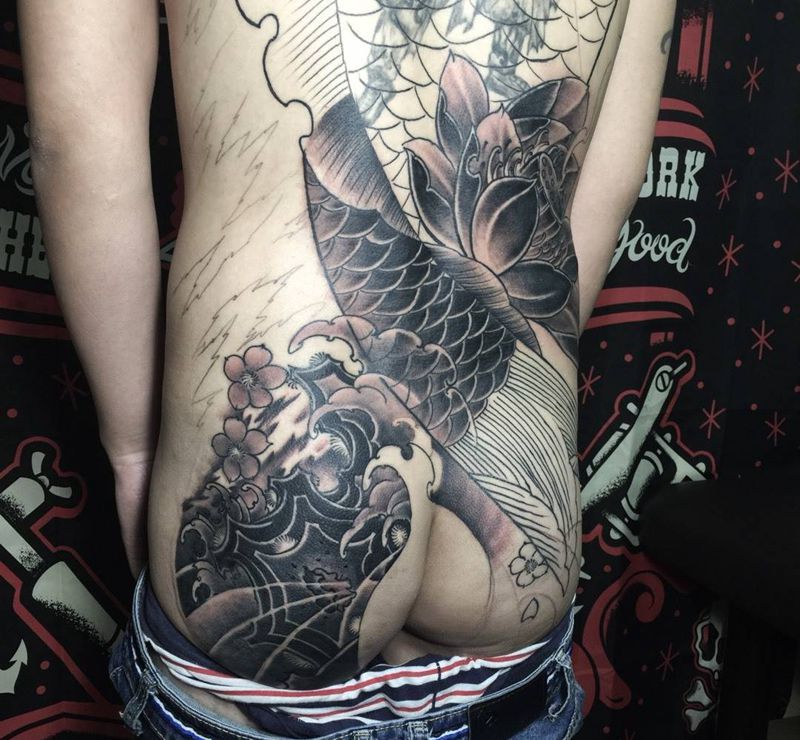 • 黑灰满背纹身图案
