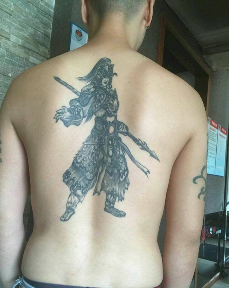 黑灰满背纹身图案