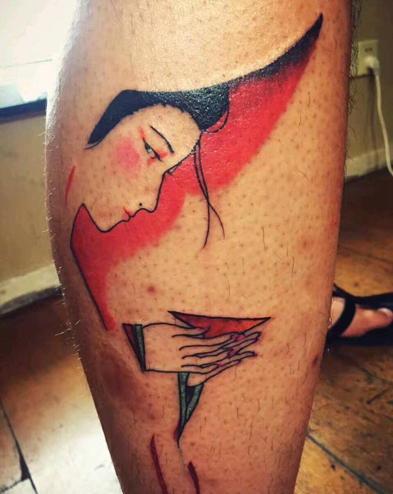 • T网红王老大花腿龙纹身图片_腿部新传统纹身图案