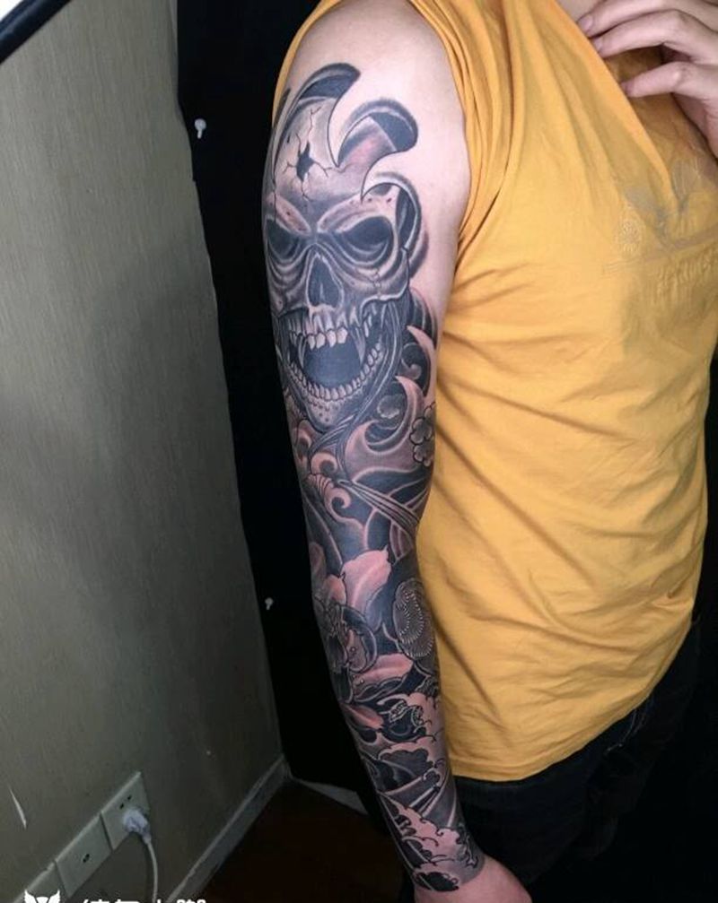 当前位置: 首页 >湖南省长沙市纹身店-长沙玩舍纹身刺青工作室纹身图案>上面的骷髅不是我做的,帮忙修了纹身图片