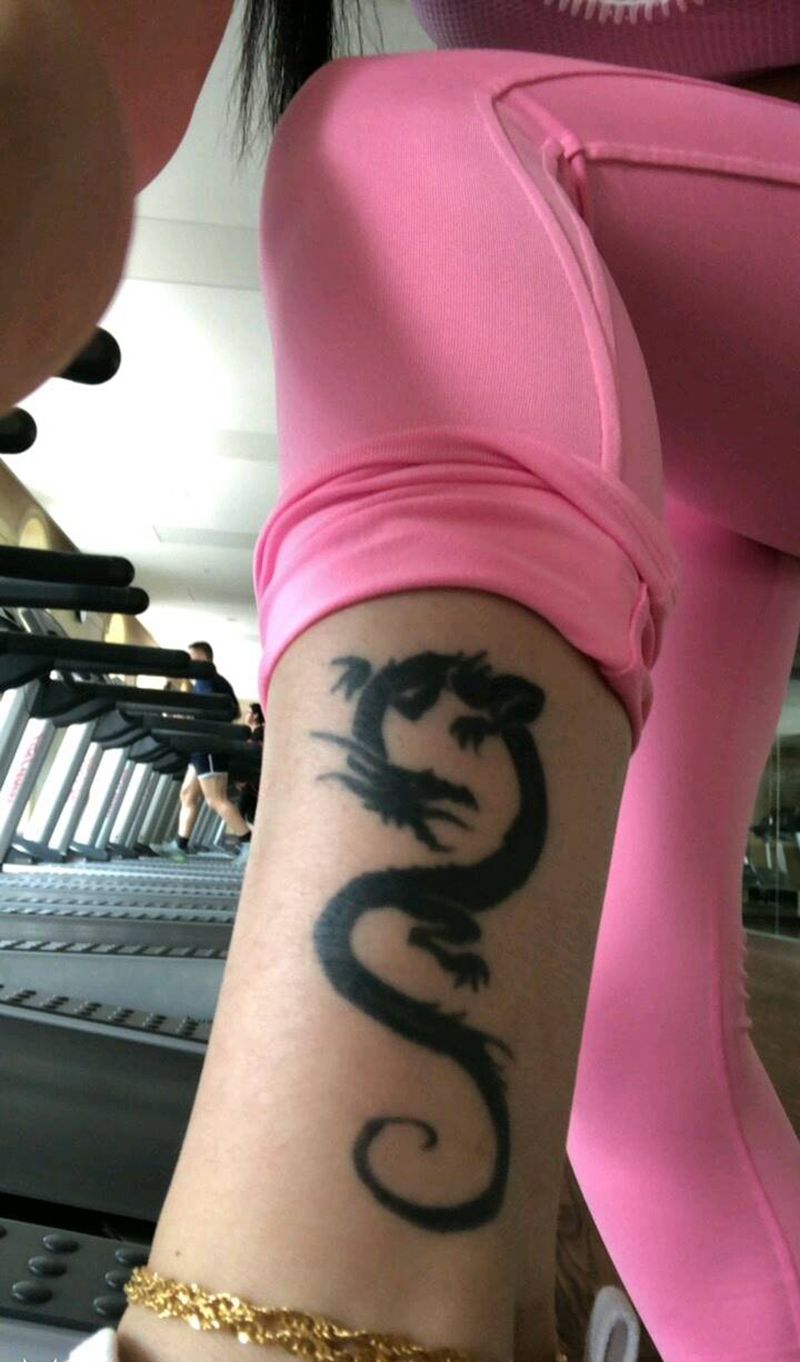 • T网红王老大花腿龙纹身图片_腿部新传统纹身图案