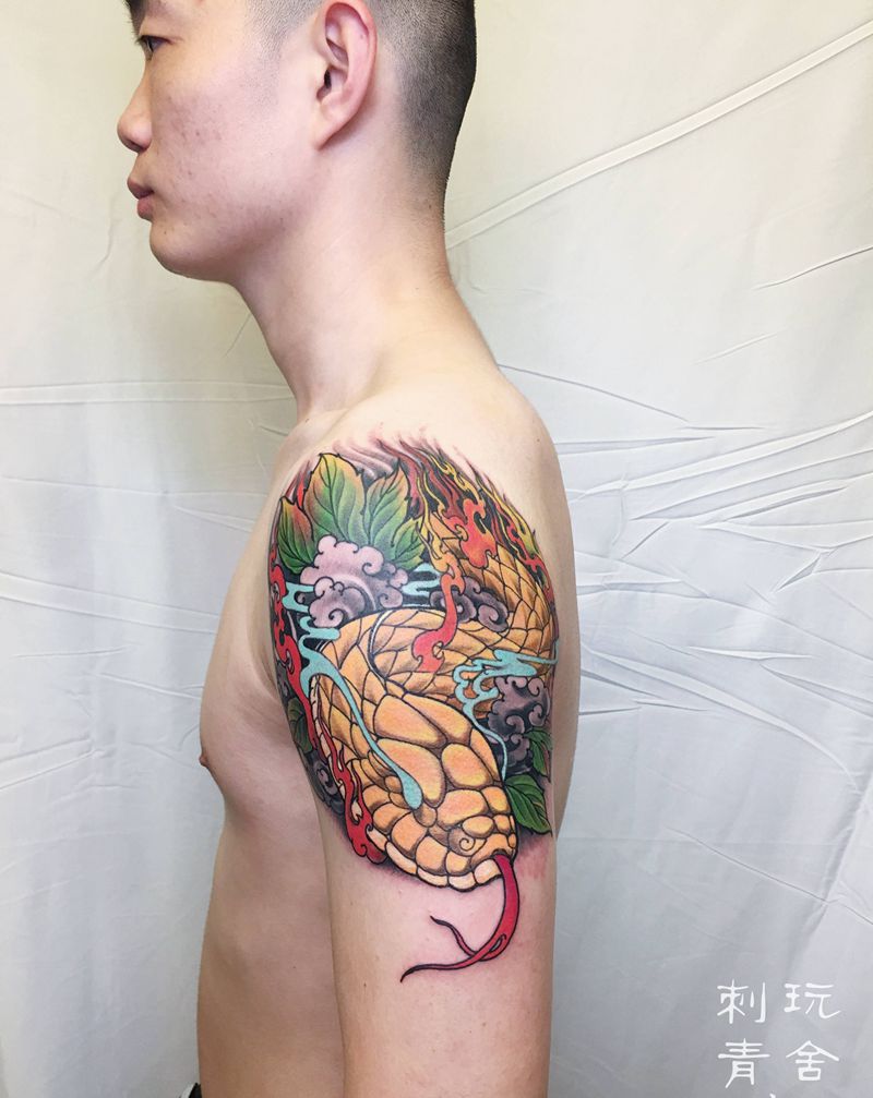 当前位置: 首页 >湖南省长沙市纹身店-长沙玩舍纹身刺青工作室纹身图案>蛇纹身图片_手臂新传统纹身图案
