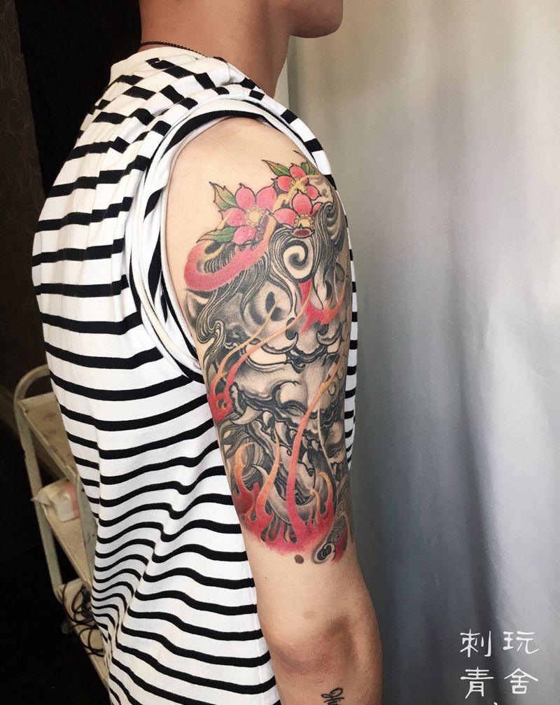 当前位置: 首页 >湖南省长沙市纹身店-长沙玩舍纹身刺青工作室纹身图案>般若唐狮纹身图片_手臂纹身图案