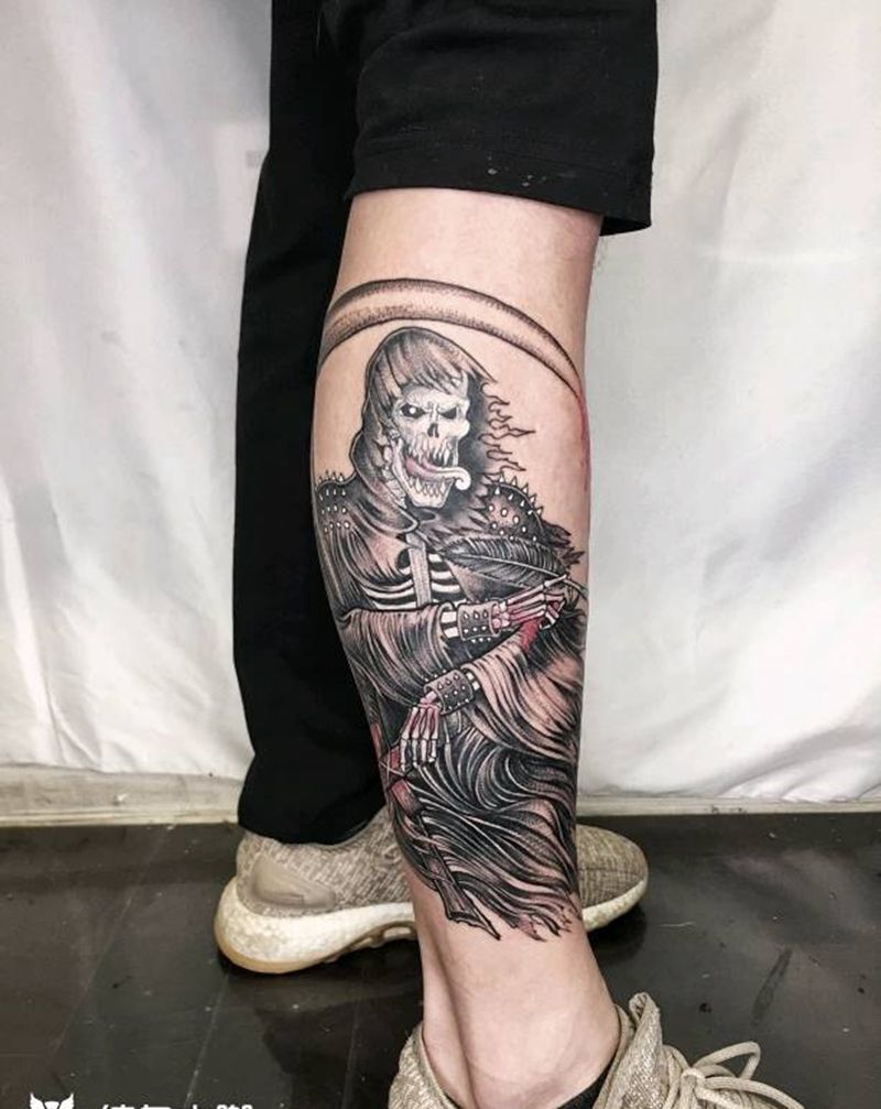 • T网红王老大花腿龙纹身图片_腿部新传统纹身图案