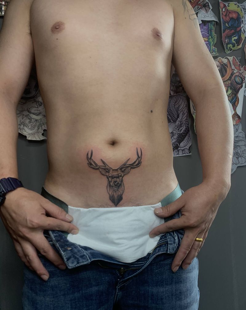当前位置: 首页 >湖南省长沙市纹身店-八海山刺青纹身图案>鹿头走一波纹身图片_腰部Old School纹身图案