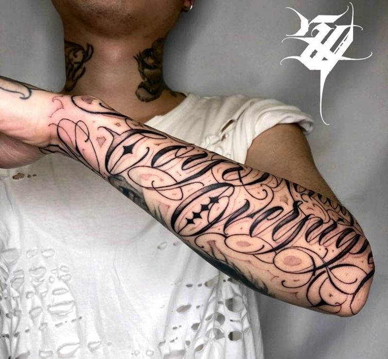 当前位置: 首页 >湖南省长沙市纹身店-长沙玩舍纹身刺青工作室纹身图案>包个手臂儿纹身图片_手部花体字纹身图案