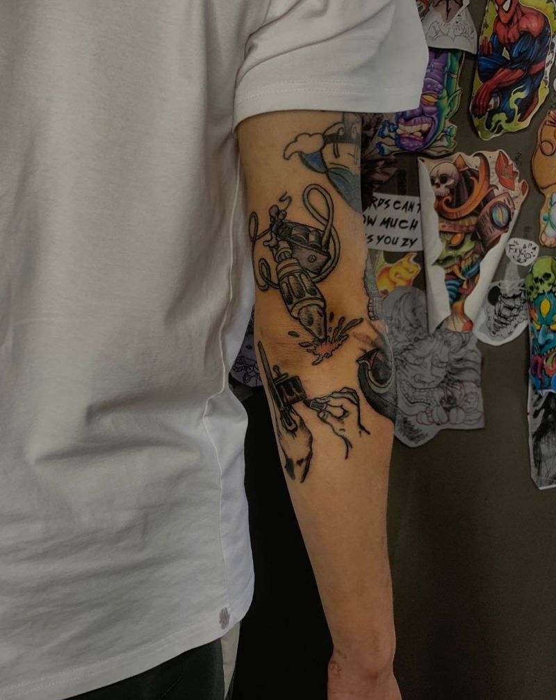 当前位置: 首页 >湖南省长沙市纹身店-八海山刺青纹身图案>花臂遮盖纹身图片_手臂新传统老传统纹身图案