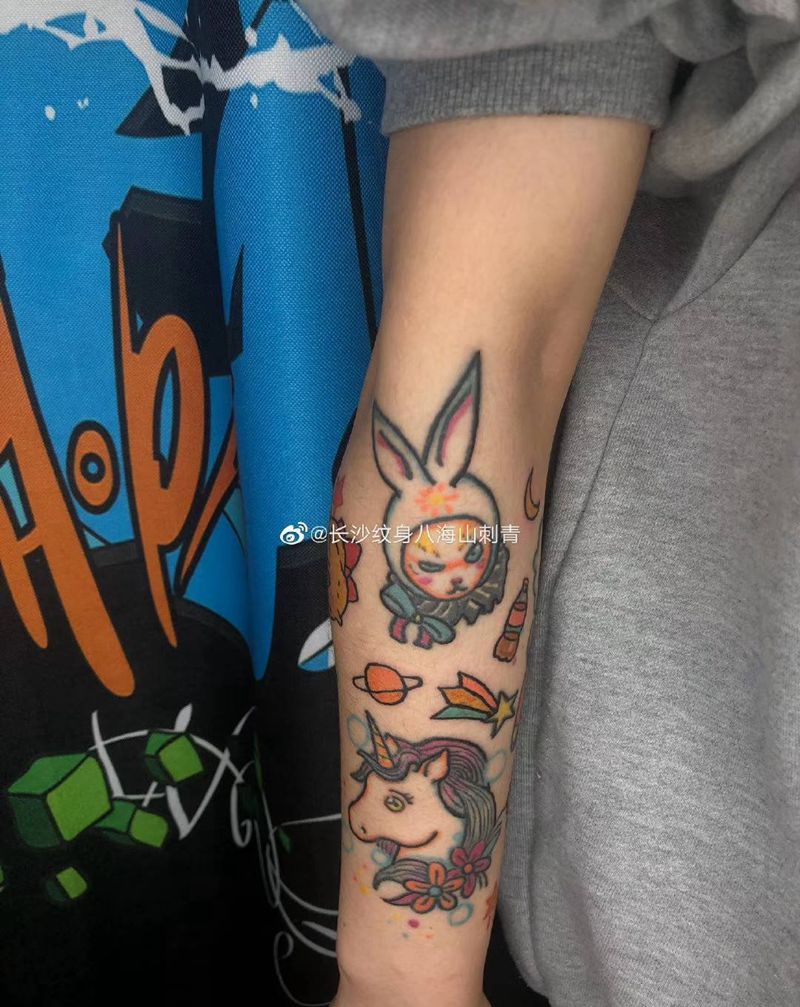 当前位置: 首页 >湖南省长沙市纹身店-八海山刺青纹身图案>拼接手臂纹身图片_New School纹身图案