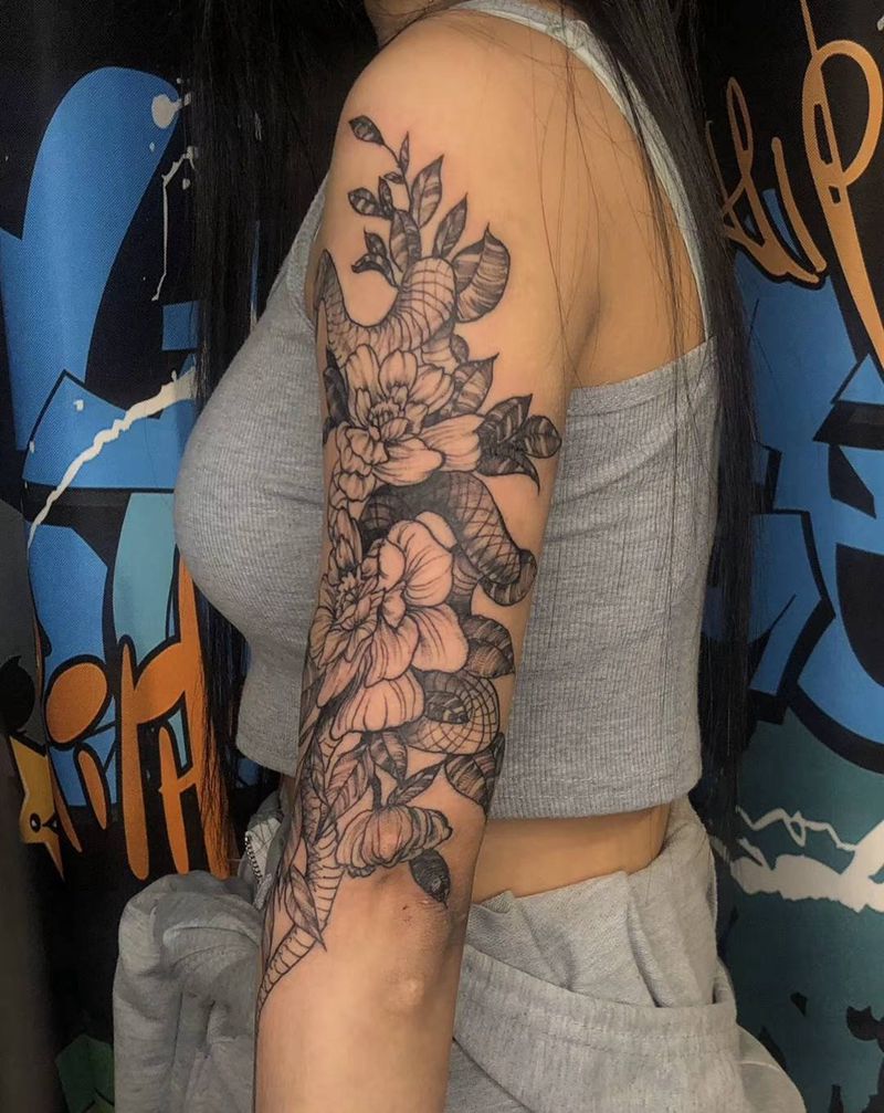 • 女性大花胸纹身_43张霸气漂亮的女性大花胸纹身图案作品