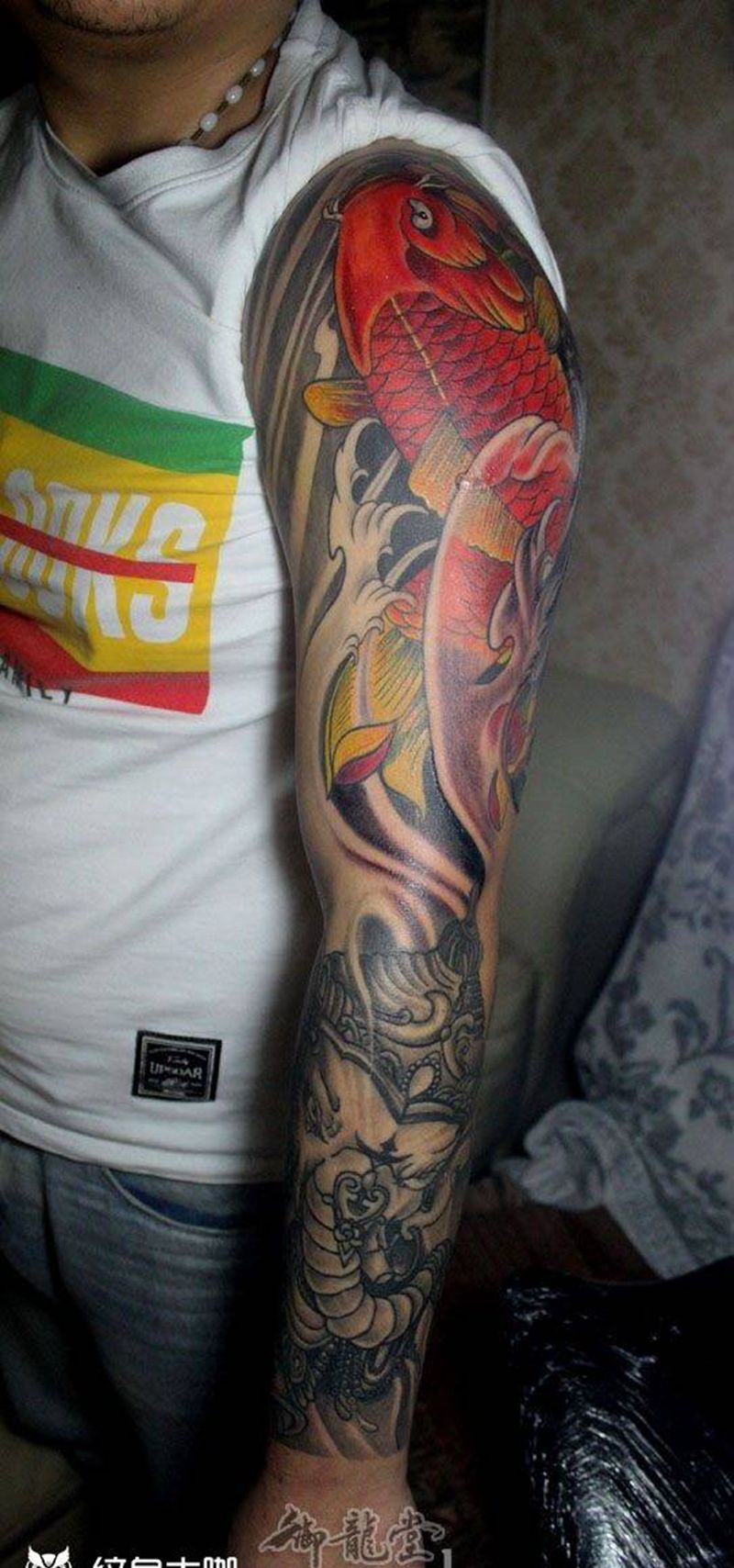 当前位置: 首页 >湖南省长沙市纹身店-长沙御龙堂纹身馆纹身图案>鲤鱼象神花臂纹身图片_成品手臂传统纹身图案