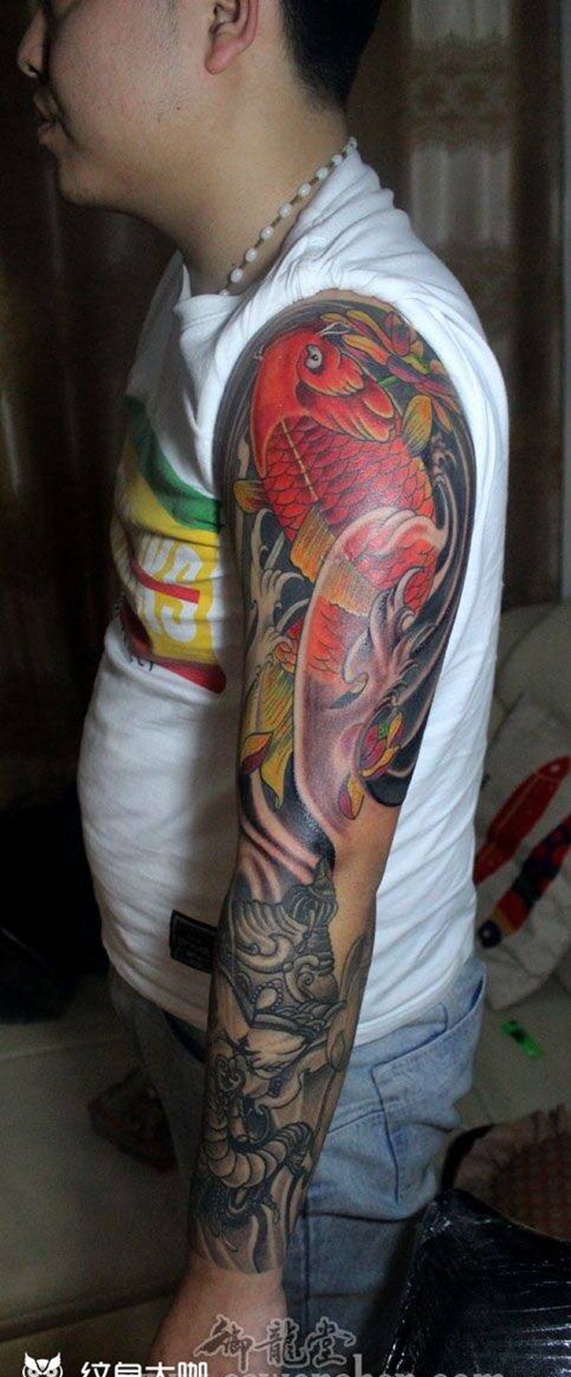 当前位置: 首页 >湖南省长沙市纹身店-长沙御龙堂纹身馆纹身图案>鲤鱼象神花臂纹身图片_成品手臂传统纹身图案