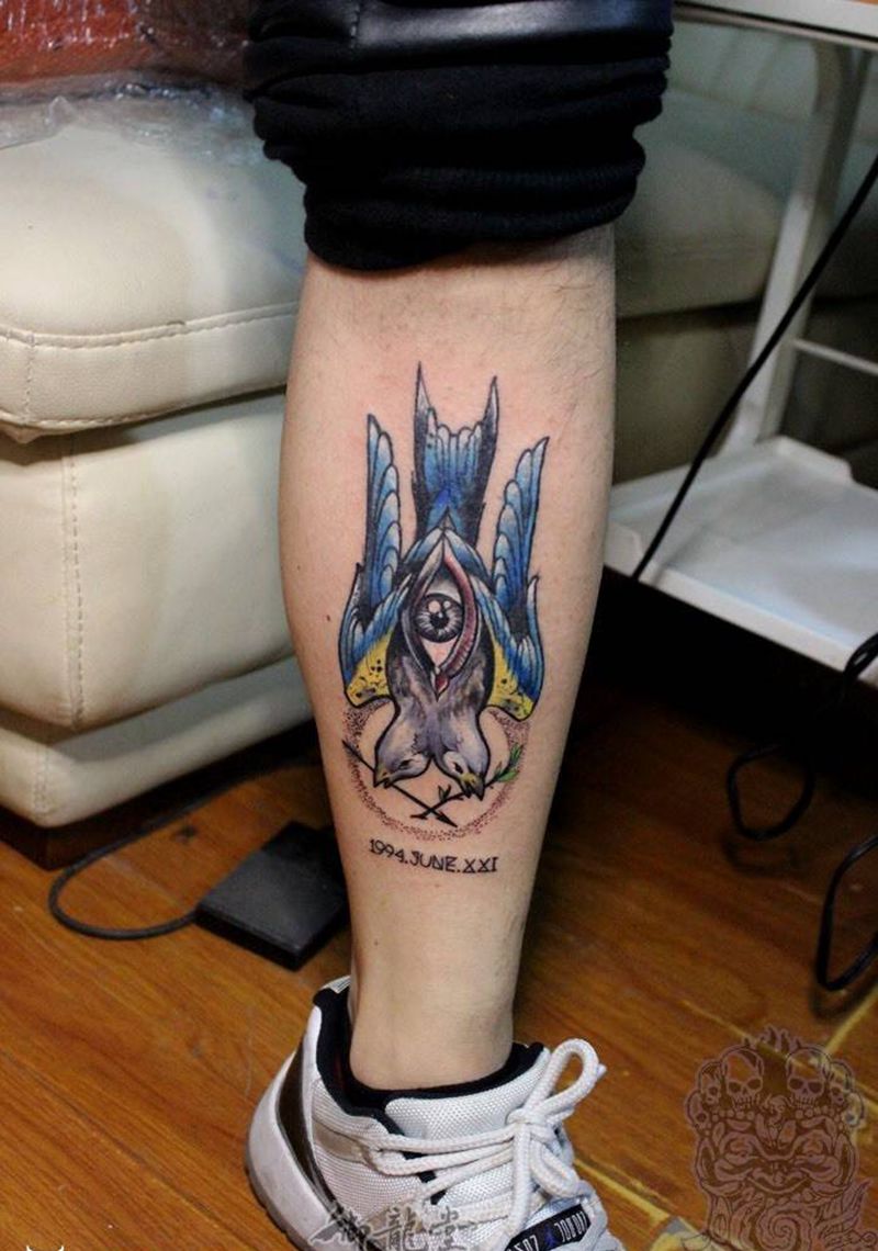 • T包小腿吹火男+阿多福纹身图片_腿部老传统新传统吹火男阿