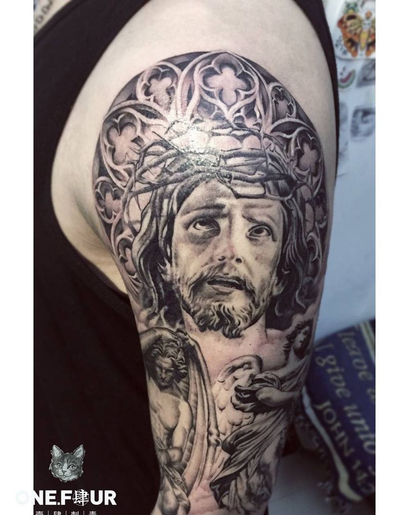 • 纹身吧推荐的披肩图腾半胛纹身图案作品展示