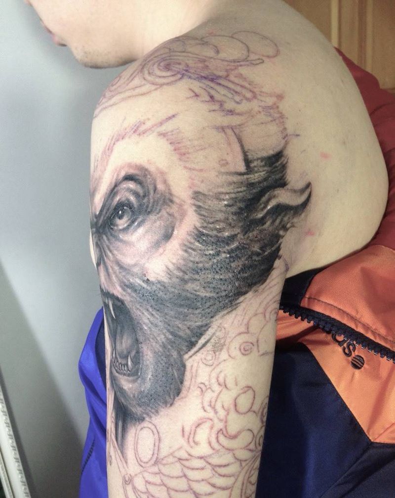 当前位置: 首页 >湖南省长沙市纹身店-长沙行刺刺青纹身图案>齐天大圣未完成纹身图片