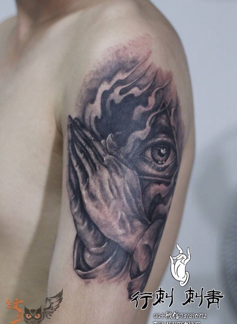 当前位置: 首页 >湖南省长沙市纹身店-长沙行刺刺青纹身图案>字体遮盖 祈祷之手纹身图片