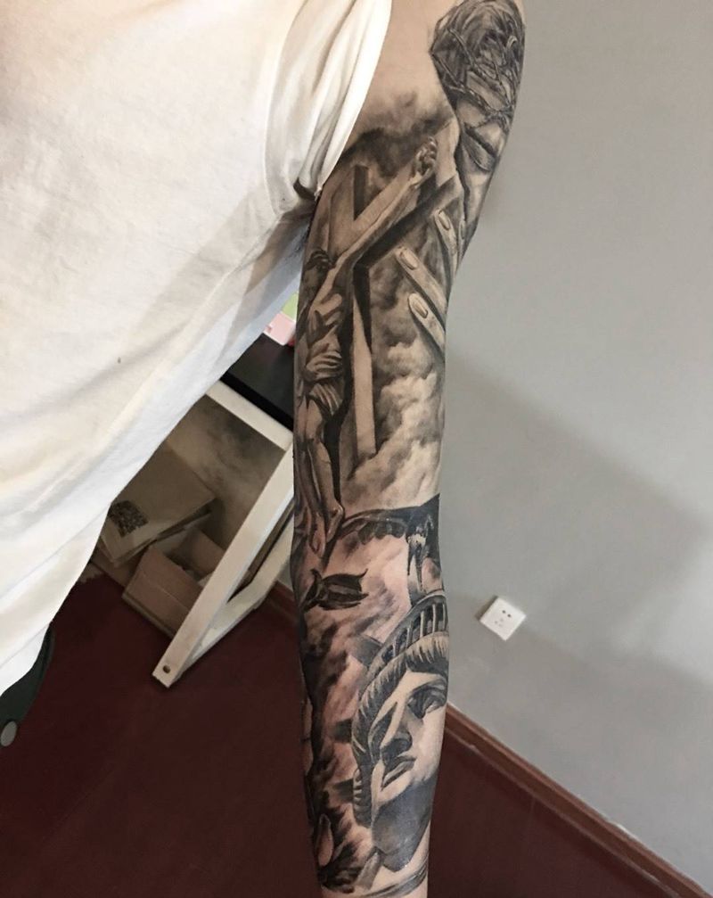 当前位置: 首页 >湖南省长沙市纹身店-长沙行刺刺青纹身图案>殴美七分袖纹身图片