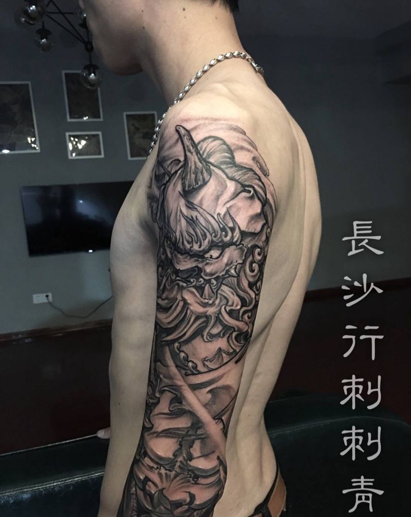 当前位置: 首页 >湖南省长沙市纹身店-长沙行刺刺青纹身图案>唐狮 小臂非本店作品纹身图片