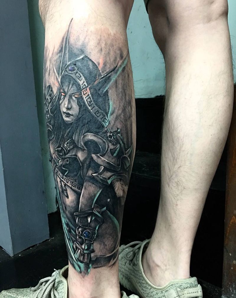 • T网红王老大花腿龙纹身图片_腿部新传统纹身图案
