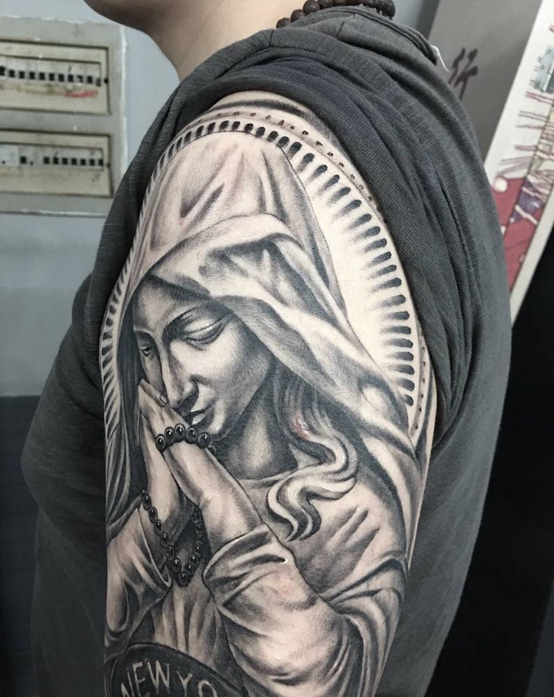 当前位置: 首页 >湖南省长沙市纹身店-长沙行刺刺青纹身图案>圣母加肖像纹身图片