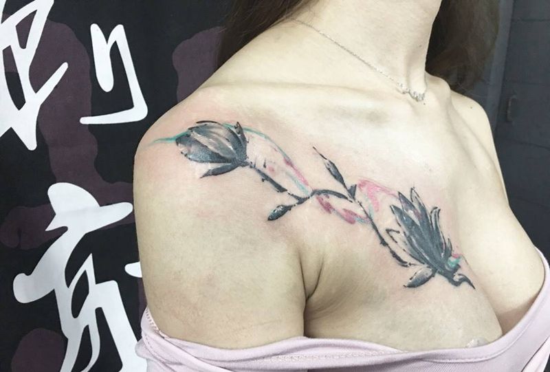一组15张莲花纹身手