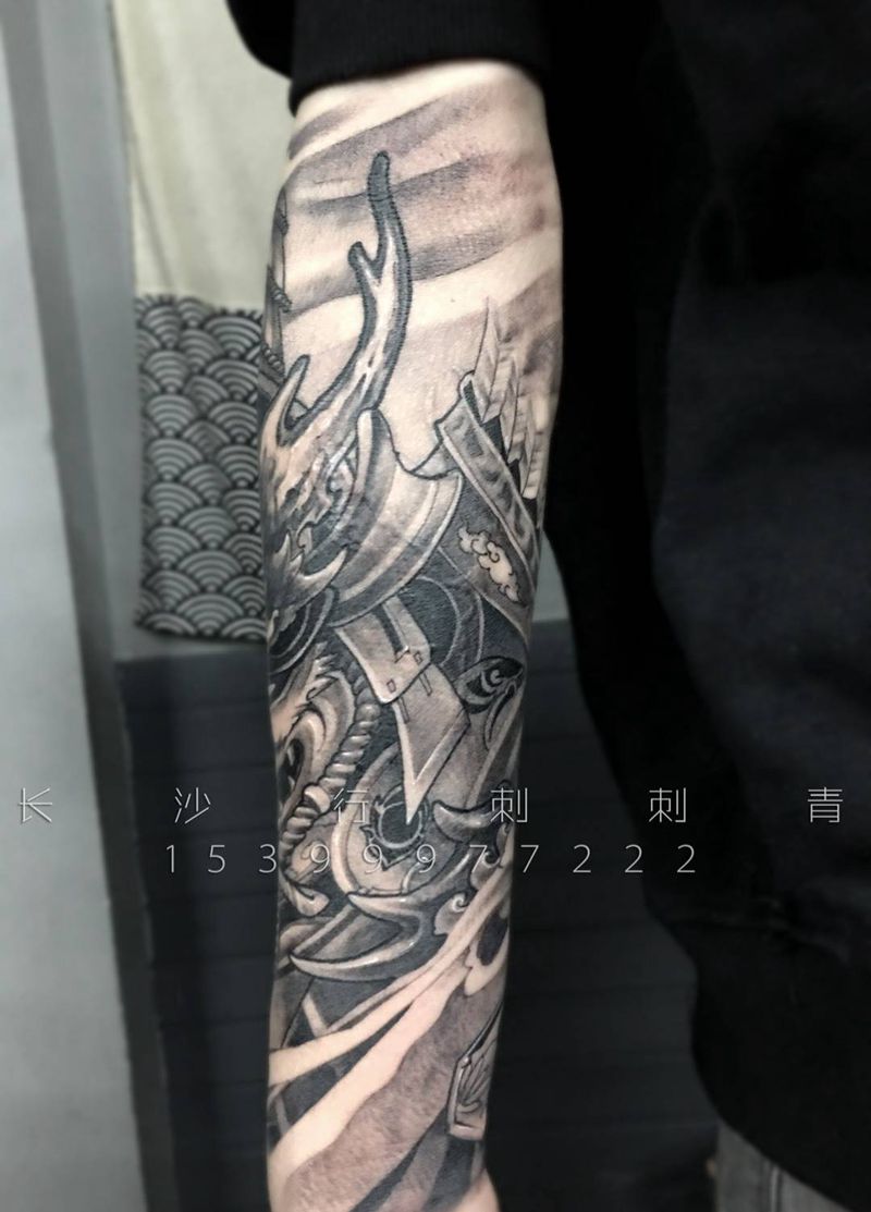 当前位置: 首页 >湖南省长沙市纹身店-长沙行刺刺青纹身图案>鬼武士包小臂纹身图片