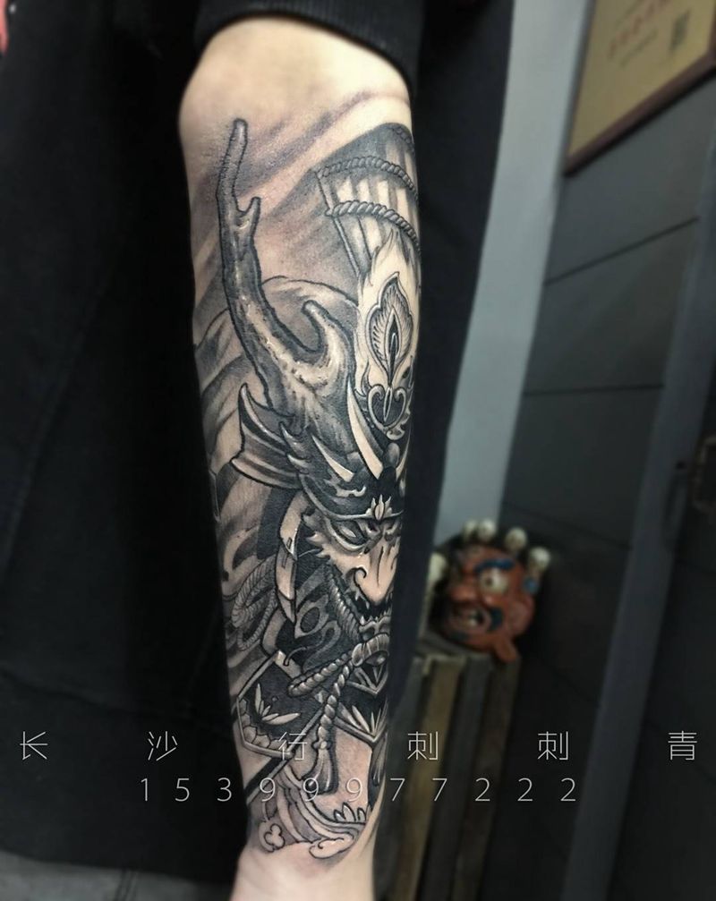 当前位置: 首页 >湖南省长沙市纹身店-长沙行刺刺青纹身图案>鬼武士包小臂纹身图片