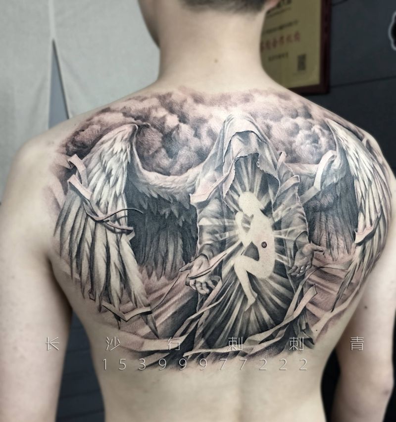 黑灰满背纹身图案