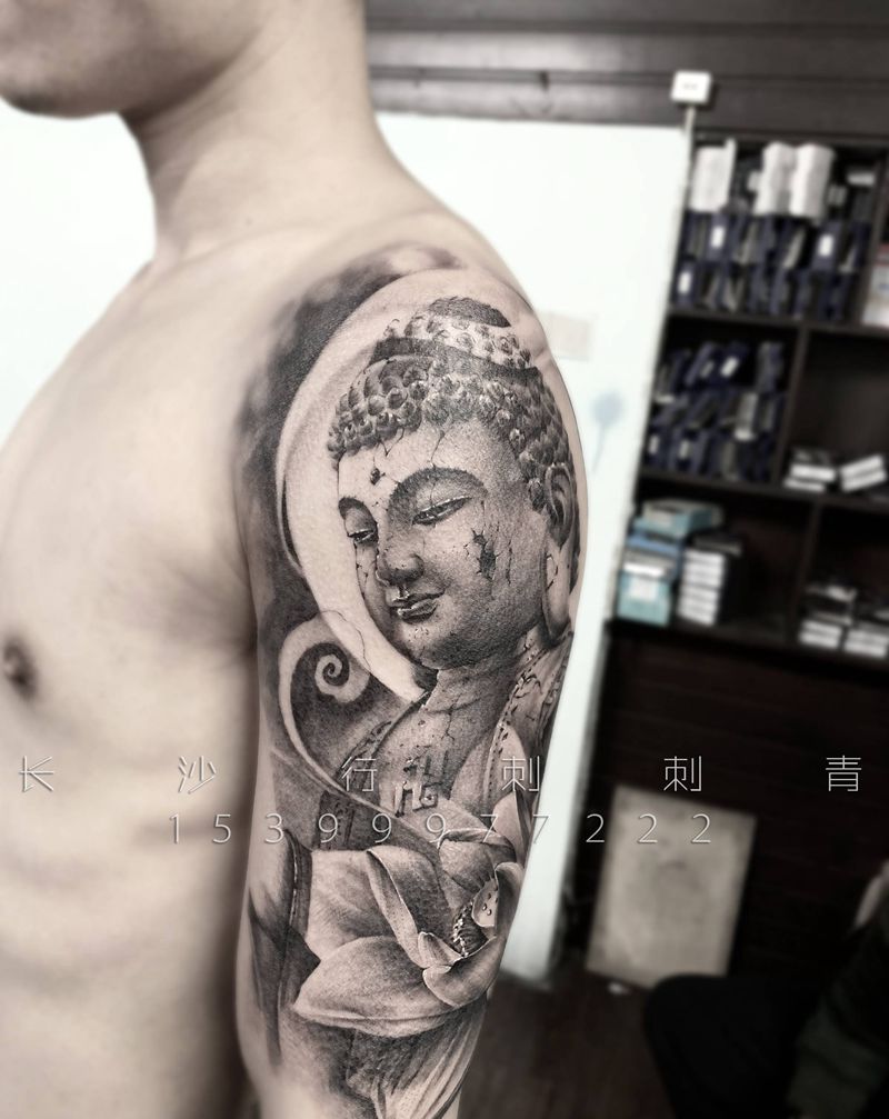 佛纹身图片_手臂新传统欧美写实纹身图案