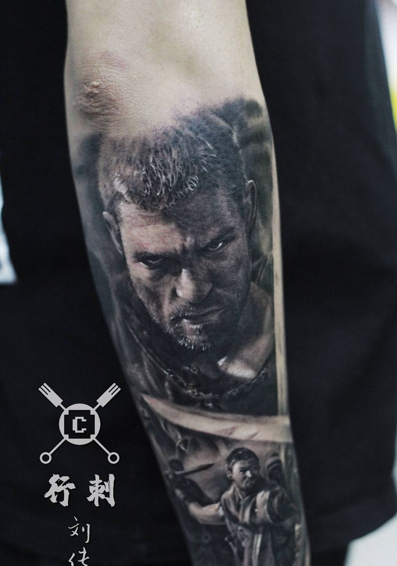 当前位置: 首页 >湖南省长沙市纹身店-长沙行刺刺青纹身图案>斯巴达克斯纹身图片_手臂欧美写实纹身图案