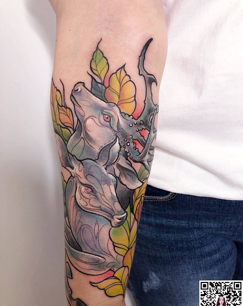 new school麋鹿纹身图片_手臂New School鹿纹身图案