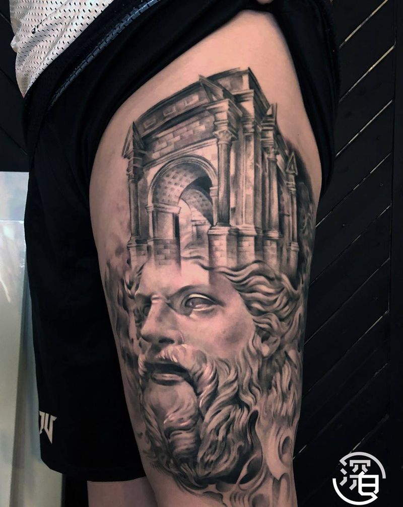 当前位置: 首页 >湖南省长沙市纹身店-深白刺青纹身图案>冥王哈迪斯纹身图片_腿部欧美写实雕塑纹身图案